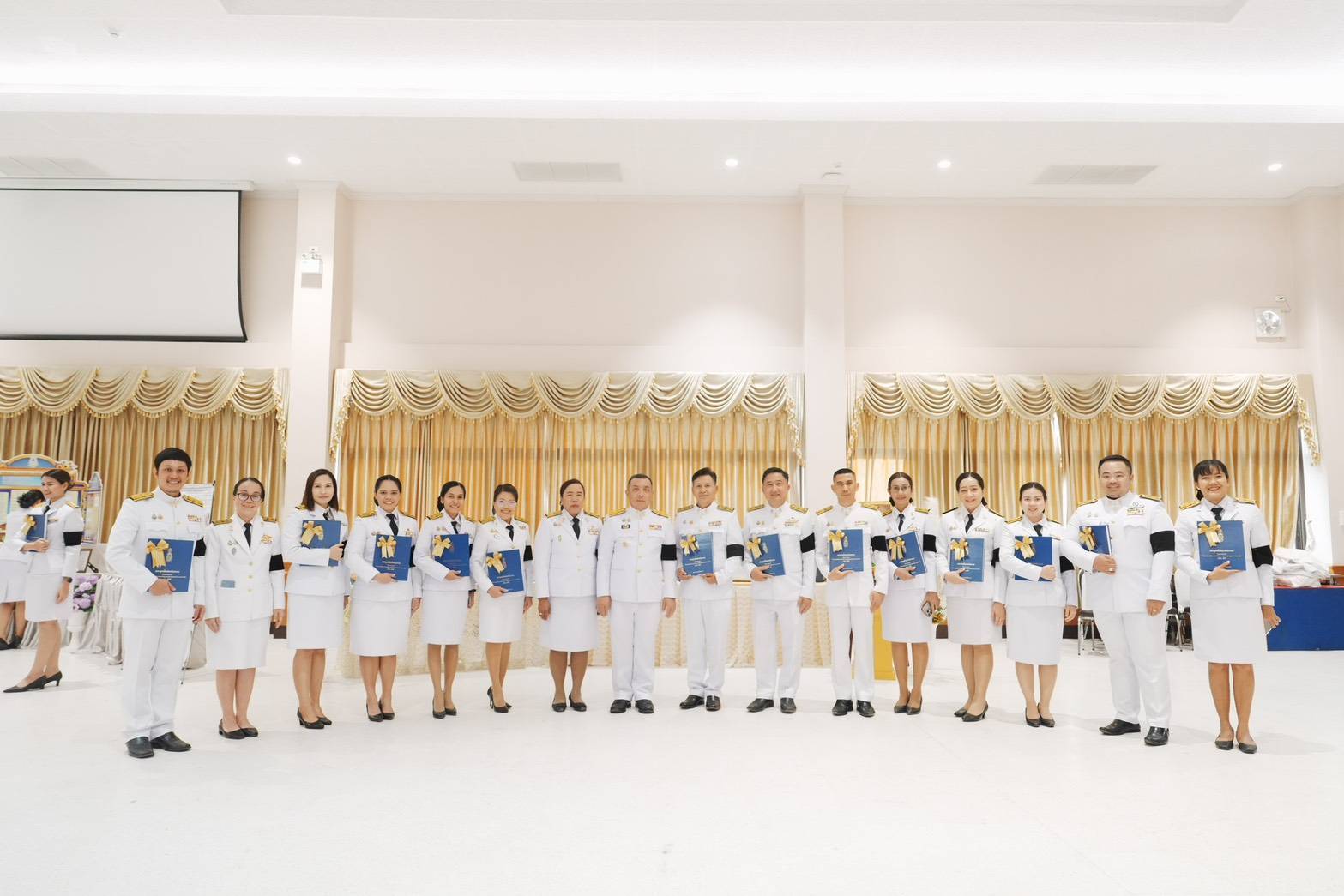 นางกมลา รักษ์วงศ์ รองผู้อํานวยการกลุ่มบริหารงานบุคคลและงานงบประมาณ ร่วมพิธีมอบหนังสือสารานุกรมไทยสำหรับเยาวชน