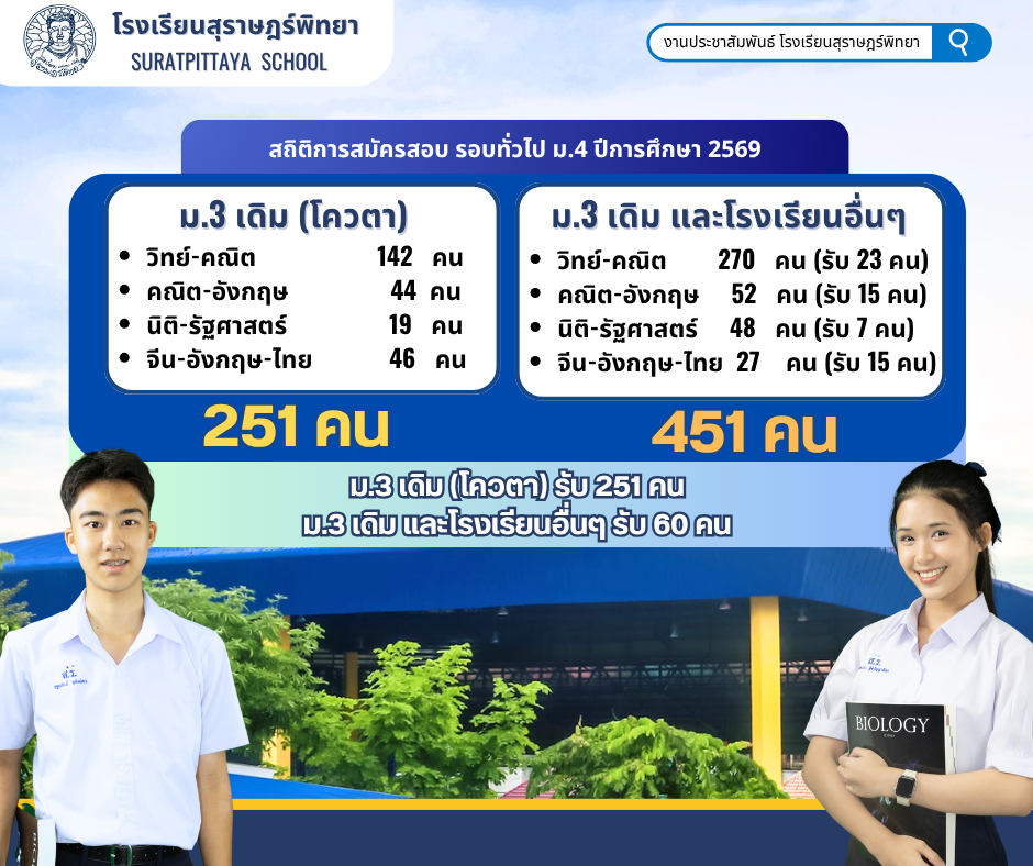 สรุปสถิติการสมัครเข้าสอบรอบทั่วไปและความสามารถพิเศษ ปีการศึกษา 2569 / ข่าวประชาสัมพันธ์, โรงเรียนแข่งขันสูง / By สุธน ภักดี ดูสถิติรับสมัครคลิกที่นี่ Post Views: 4