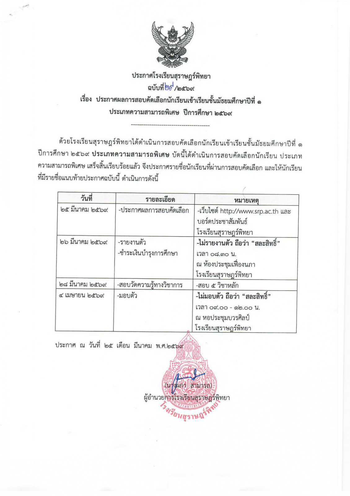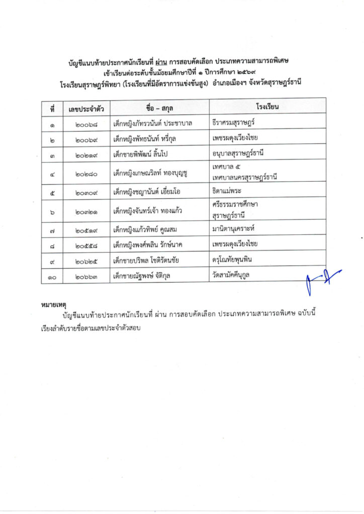 ประกาศผลการสอบคัดเลือกนักเรียนเข้าเรียน ประเภทความสามารถพิเศษ ปีการศึกษา 2569 / ข่าวประกาศ, โรงเรียนแข่งขันสูง / By สุธน ภักดี Post Views: 26