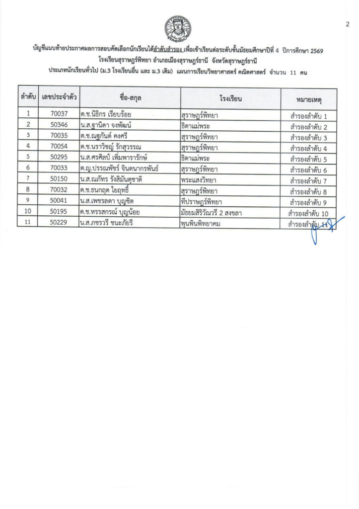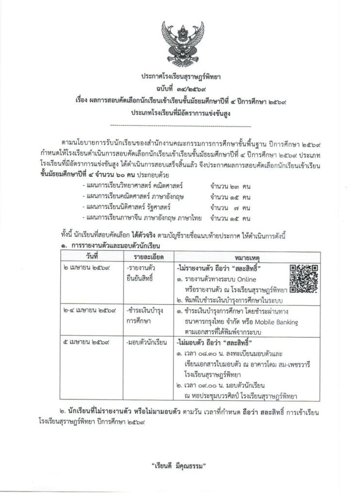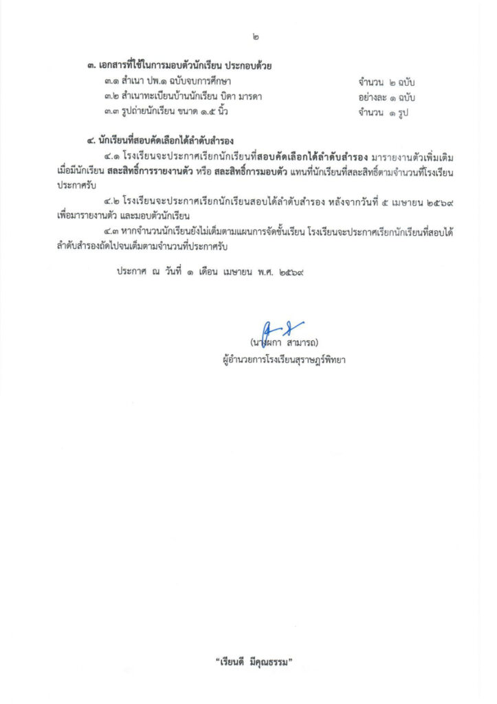 1. รายงานตัว วันพฤหัสบดีที่ 2 เมษายน พ.ศ. 2569 นักเรียนที่สอบได้ เข้าสู่ระบบ โดยใช้เลขประจำตัวสอบและเลขบัตรประจำตัวประชาชนเป็นรหัสผ่าน คลิกปุ่มรายงานตัว