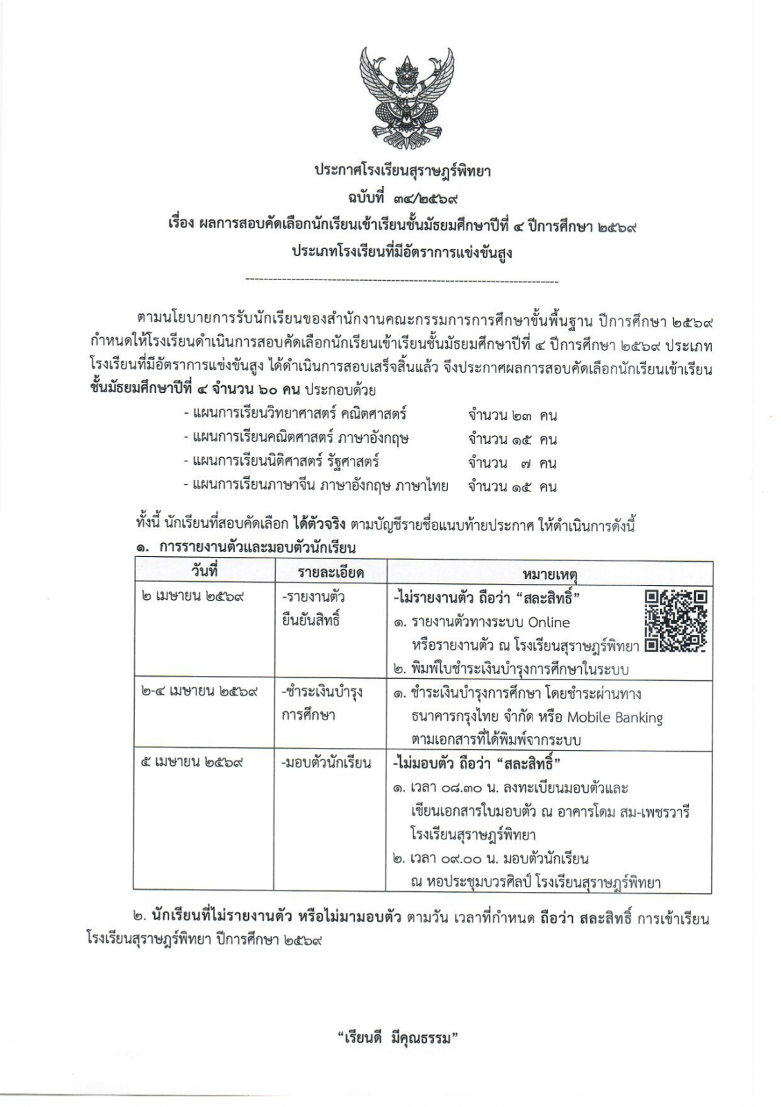 1. รายงานตัว วันพฤหัสบดีที่ 2 เมษายน พ.ศ. 2569 นักเรียนที่สอบได้ เข้าสู่ระบบ โดยใช้เลขประจำตัวสอบและเลขบัตรประจำตัวประชาชนเป็นรหัสผ่าน คลิกปุ่มรายงานตัว