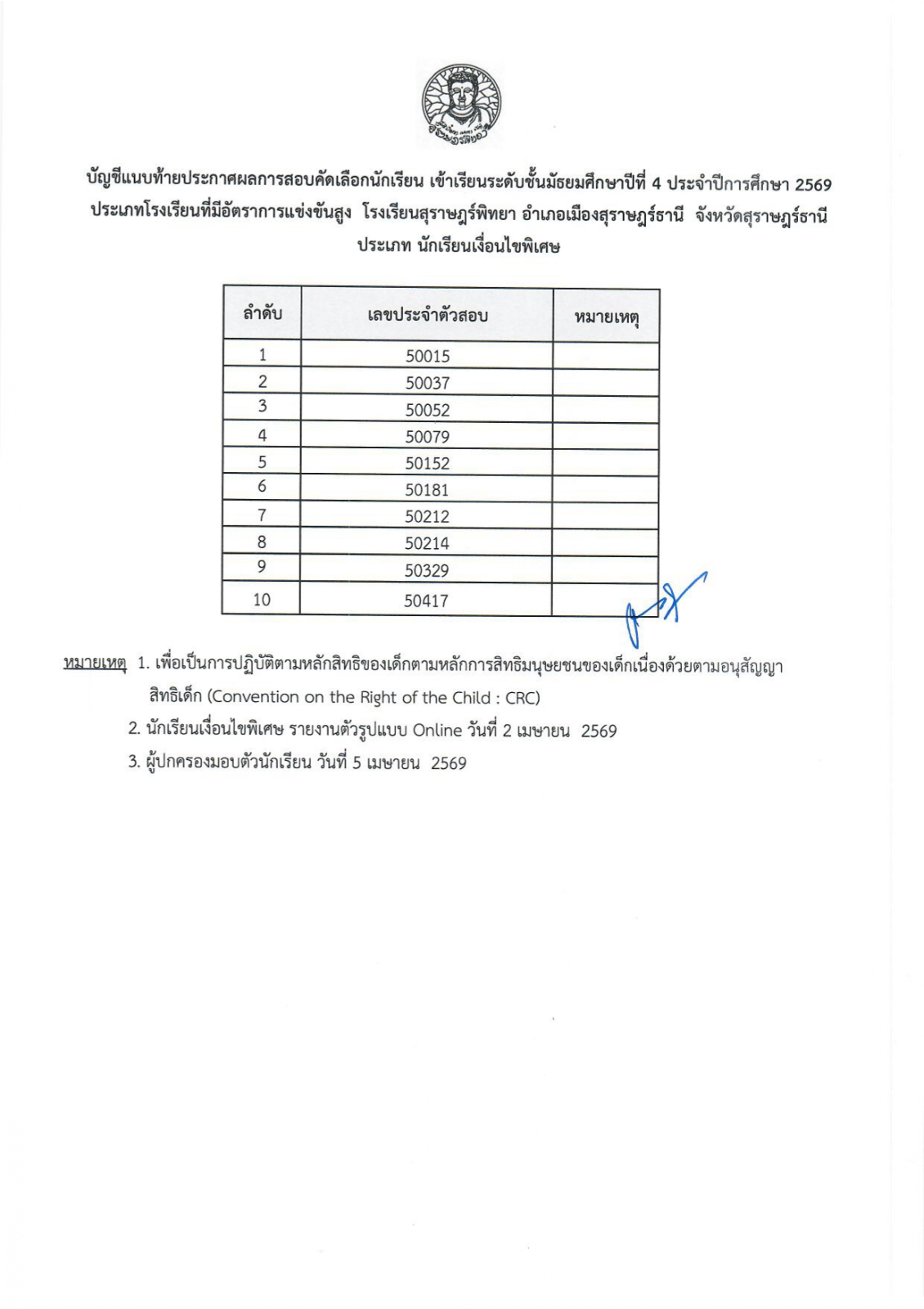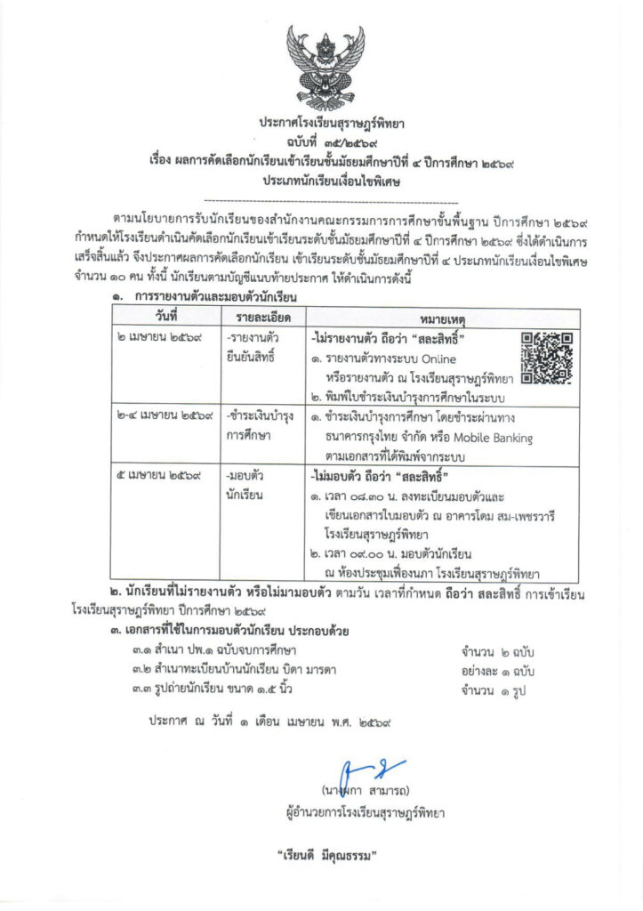1. รายงานตัว วันพฤหัสบดีที่ 2 เมษายน พ.ศ. 2569 นักเรียนที่สอบได้ เข้าสู่ระบบ โดยใช้เลขประจำตัวสอบและเลขบัตรประจำตัวประชาชนเป็นรหัสผ่าน คลิกปุ่มรายงานตัว