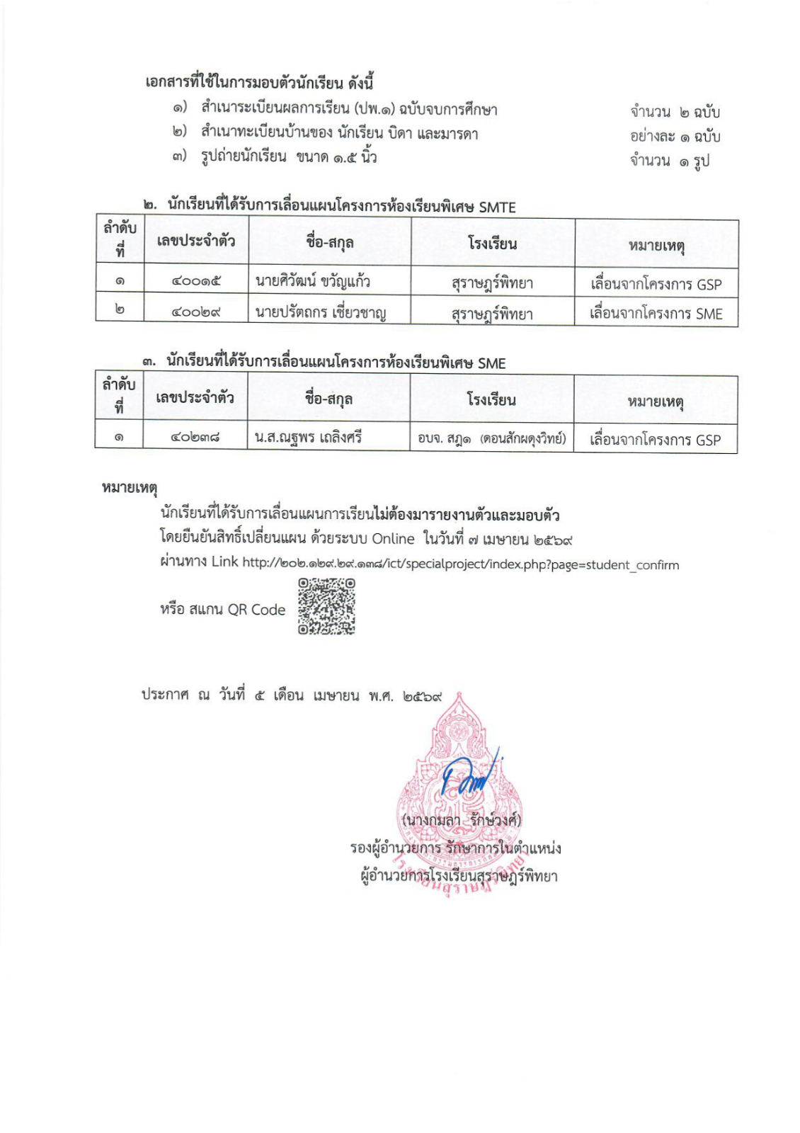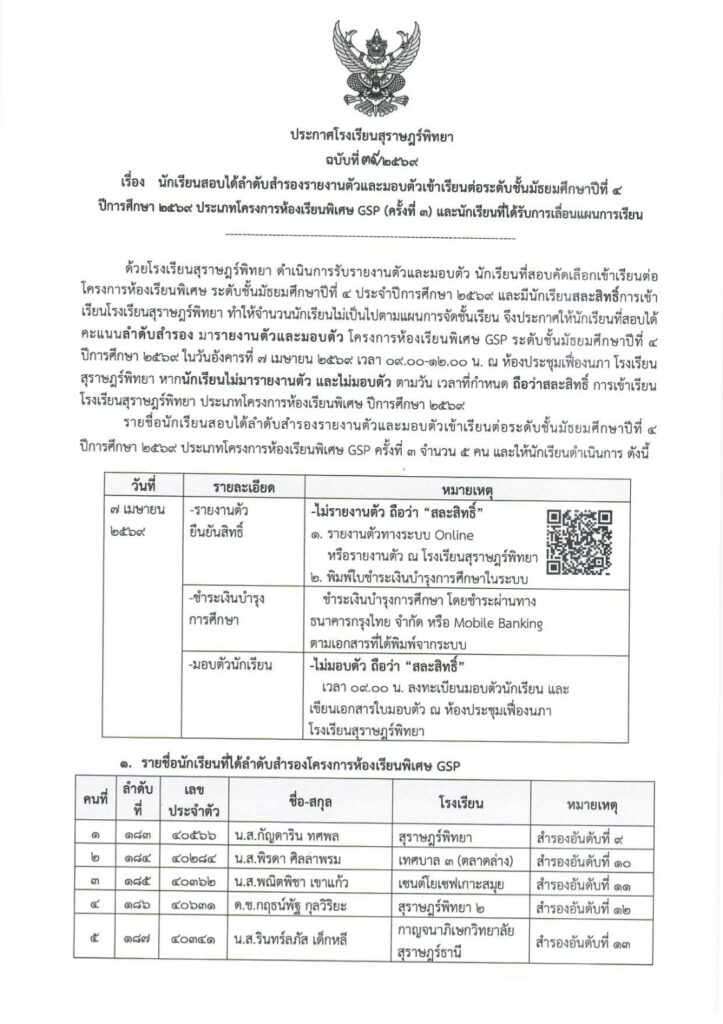 ประกาศนักเรียนสอบคัดเลือกได้ลำดับสำรองรายงานตัวและมอบตัว ม.4 ปีการศึกษา 2569 ประเภทโครงการห้องเรียนพิเศษ GSP (ครั้งที่ 3) และนักเรียนได้รับเลื่อนแผนการเรียน / จดหมายข่าว, โครงการห้องเรียนพิเศษ / By สุธน ภักดี Post Views: 9
