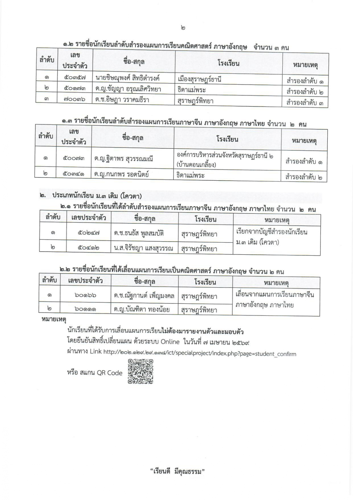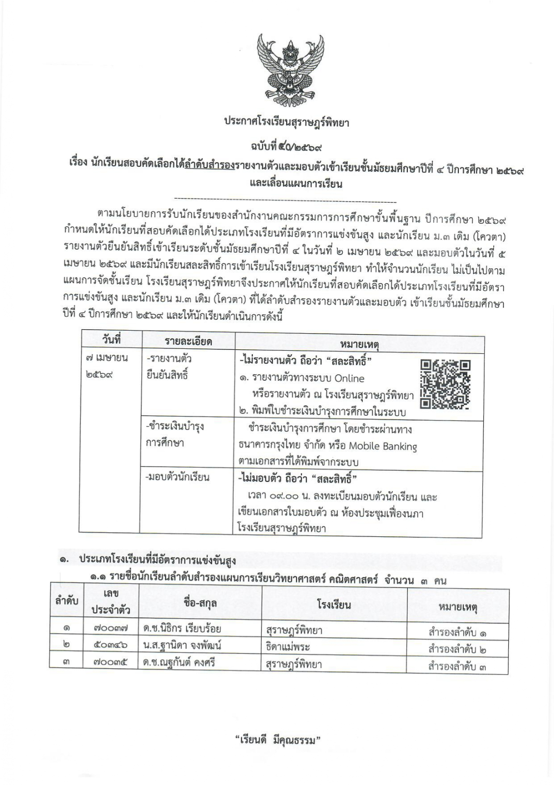 ประกาศนักเรียนสอบคัดเลือกได้ลำดับสำรองรายงานตัวและมอบตัว ม.4 ปีการศึกษา 2569 รอบทั่วไป และนักเรียนได้รับเลื่อนแผนการเรียน / ข่าวประกาศ, โรงเรียนแข่งขันสูง / By สุธน ภักดี Post Views: 24