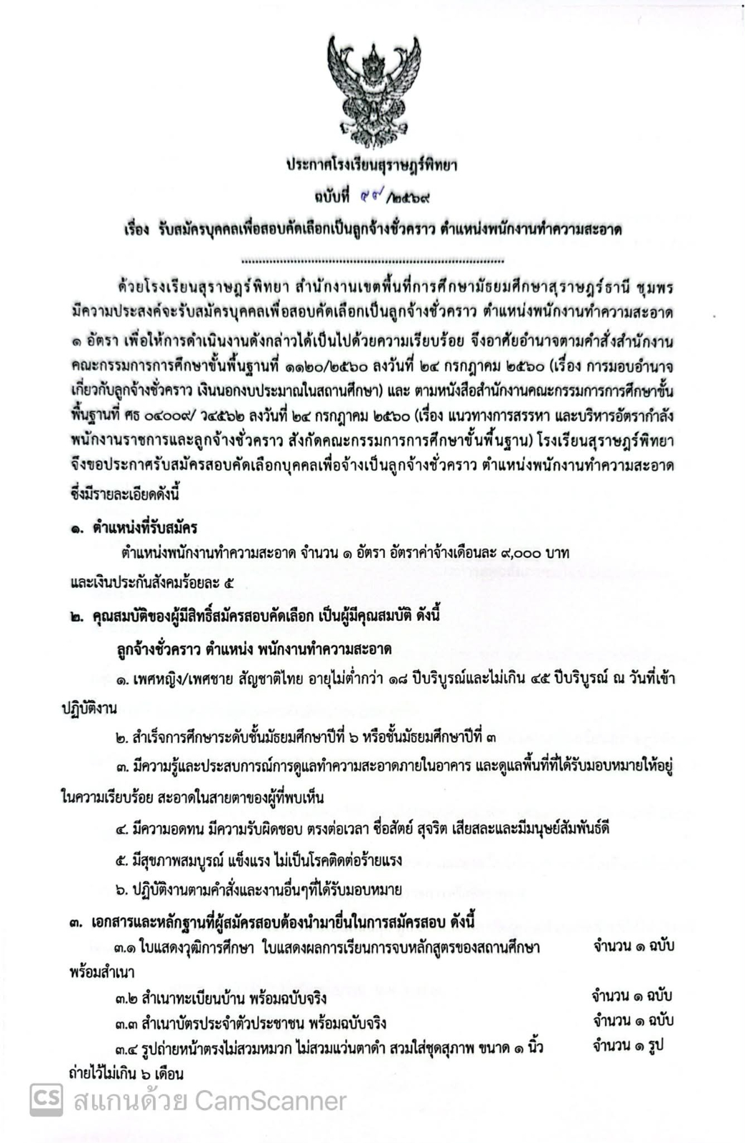 รับสมัครบุคคลเพื่อสอบคัดเลือกเป็นลูกจ้างชั่วคราว ตำแหน่งพนักงานทำความสะอาด / ข่าวประกาศ / By สุธน ภักดี Post Views: 3