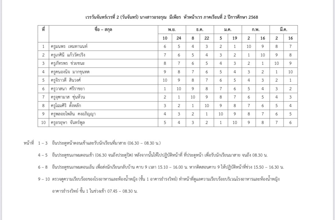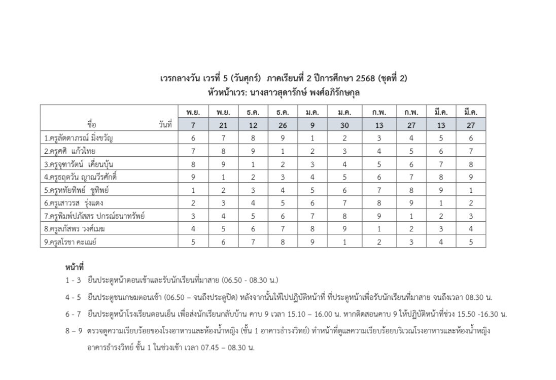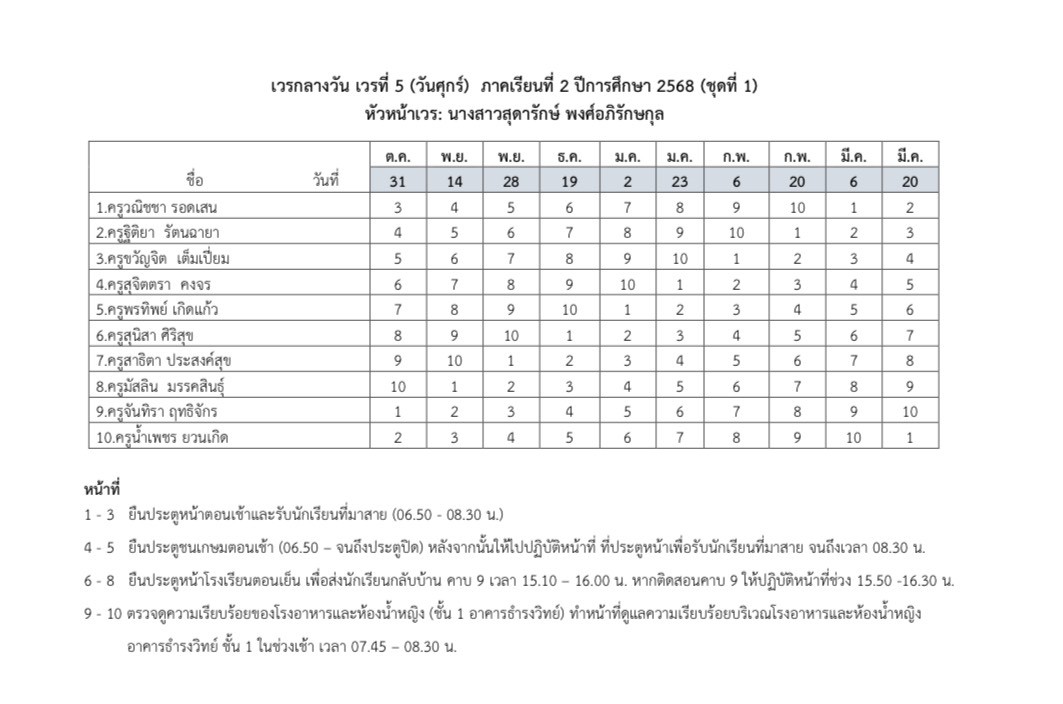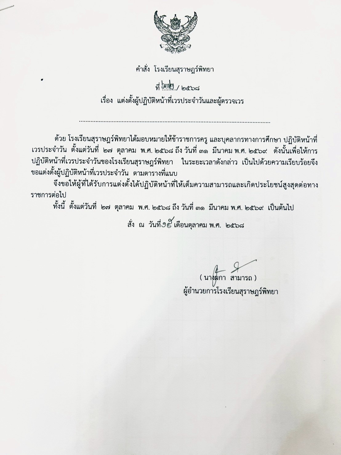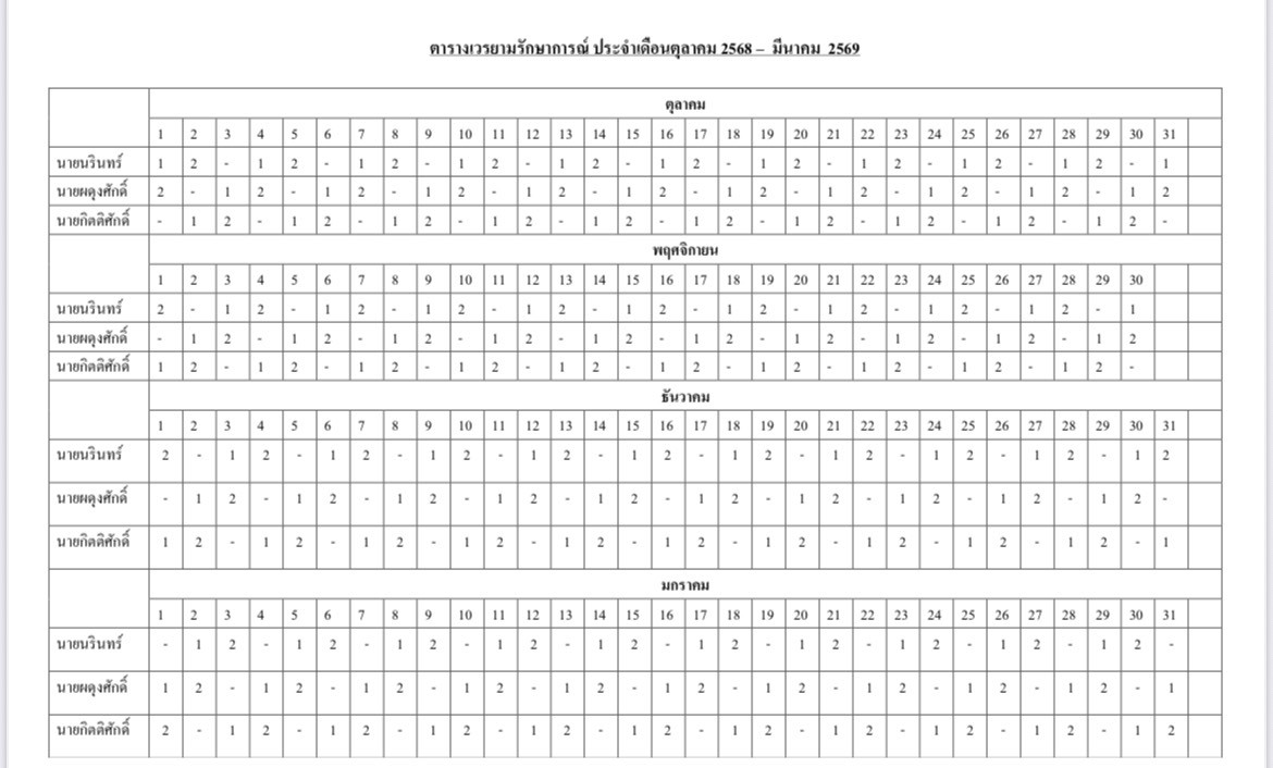 คำสั่งแต่งตั้งผู้ปฏิบัติหน้าที่เวรประจำวันและผู้ตรวจเวร คำสั่งปฏิบัติหน้าที่เวรประจำวันและผู้ตรวจเวร ตั้งแต่วันที่ 27 ตุลาคม 2568 – 31 มีนาคม 2569 และคำสั่งปฏิบัติหน้าที่เวรในวันจันทร์ถึงวันศุกร์ Post Views: 2,946