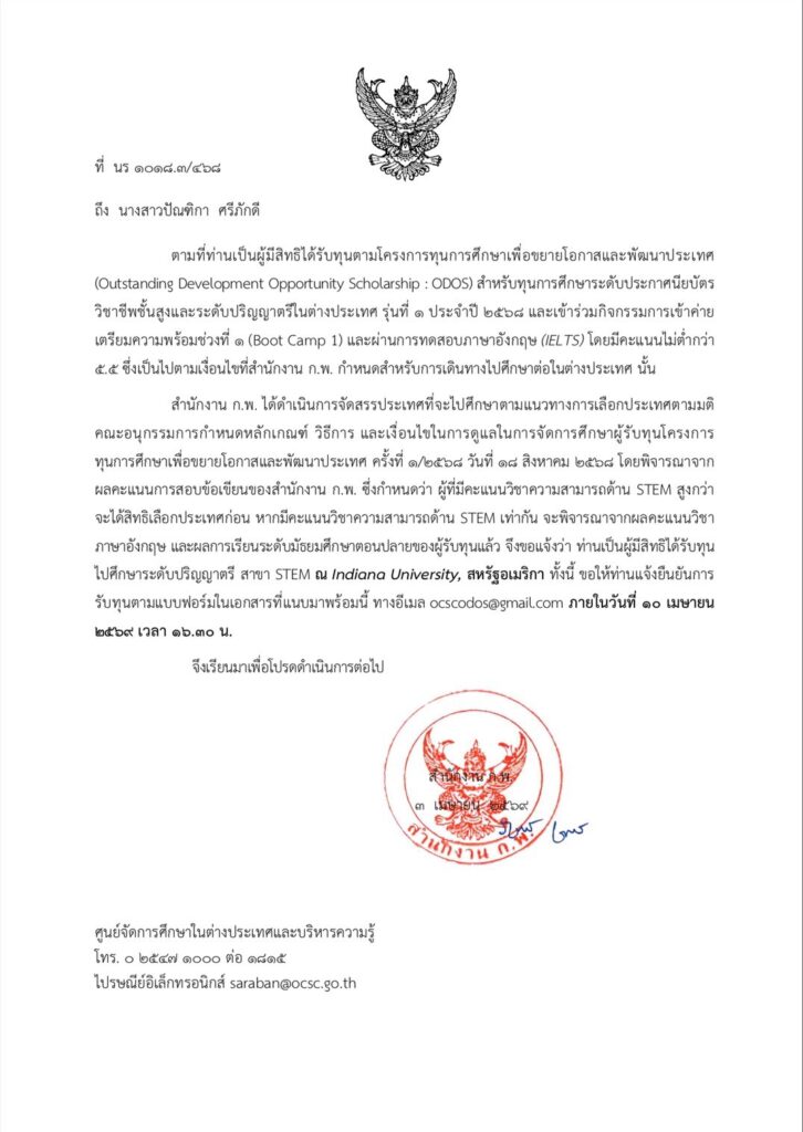 น.ส.ปัณฑิกา ศรีภักดี ได้รับทุนตามโครงการทุนการศึกษาเพื่อขยายโอกาสและพัฒนาประเทศ (Outstanding Development Opportunity Scholarship : ODOS) / ข่าวประชาสัมพันธ์ / By สุธน ภักดี โรงเรียนสุราษฎร์พิทยา ขอแสดงความยินดีกับนางสาวปัณฑิกา ศรีภักดี นักเรียนชั้นมัธยมศึกษาปีที่ 6/9ได้รับทุนตามโครงการทุนการศึกษาเพื่อขยายโอกาสและพัฒนาประเทศ (Outstanding Development Opportunity Scholarship : ODOS) โดยได้รับทุนไปศึกษาระดับปริญญาตรี สาขา STEM ณ Indiana University สหัฐอเมริกา Post Views: 30